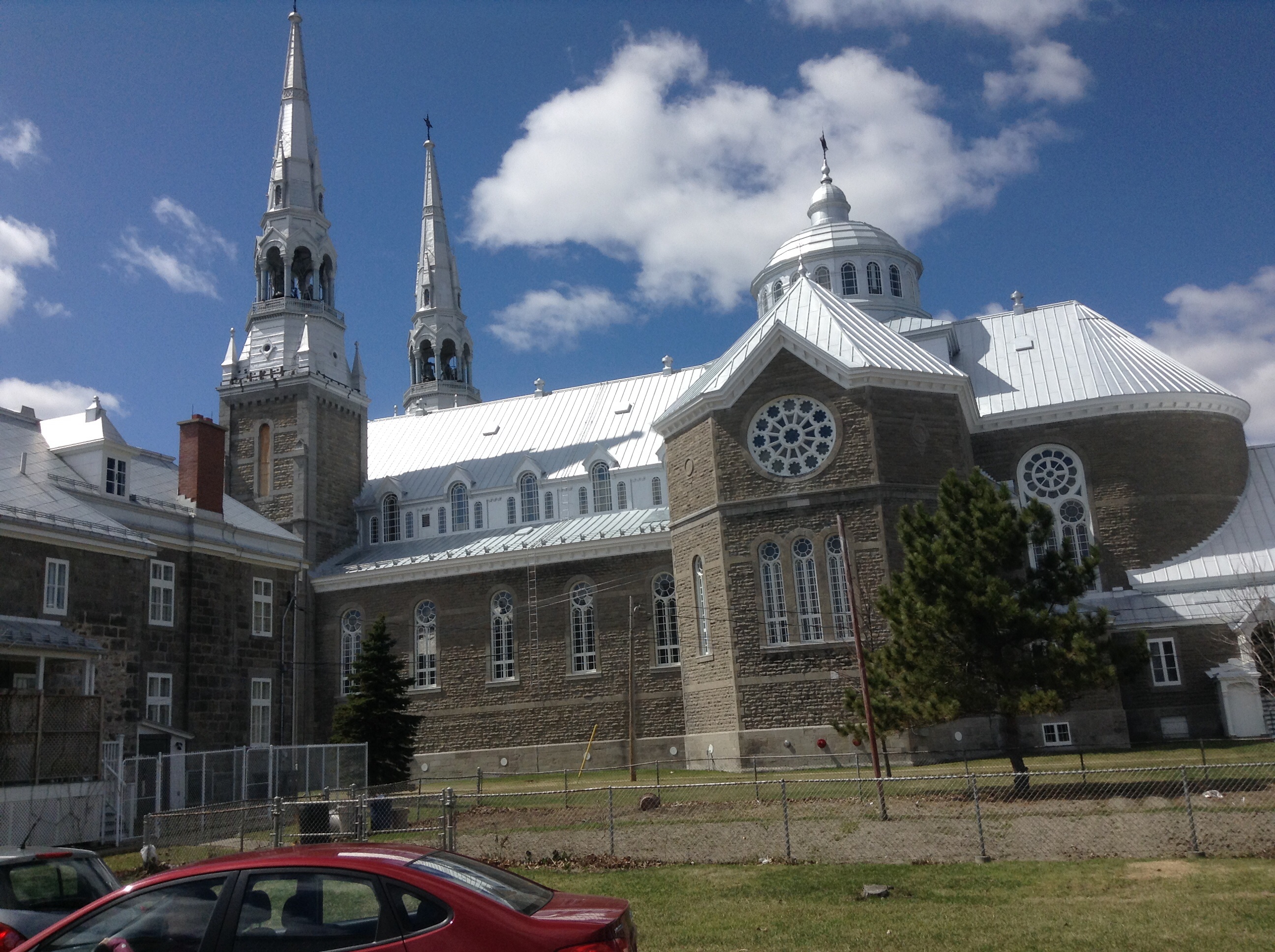 I love this river. Yesterday it was quite windy, a wind from the east battling the flow of the river and raising white-caps. I saw a couple of ships which I always find thrilling – imagining being on board and slowly making my way down the river. Of course there are highways linking Montreal and Quebec City but I prefer the old road that hugs the river. In the old villages there are streets that run right down to the water’s edge where boats can be launched. The houses are mixed in architecture, some modest modern homes and many traditional Quebec houses with their steeply pitched roofs. The churches and adjacent buildings are often quite magnificent. Today you will see two pictures: one of the river and one of the Ste Anne basilica. The secondary road is called la Route des Navigateurs. The Pilots’ Route. The River is shallow in some places and in spite of charts the pilot was an important figure. The memory of travelling down the river when I was a young girl is a vivid one for me. When we immigrated to Canada we came by boat ( prehistoric eh? ) and my wonder at the size of the river has remained with me. I love the role the river played in history and I love sense of continuity, eternity perhaps. The river flows on and on, day and night, whether we pay attention or not. And that’s why I like to . . . . . Pay attention. PS. My neighbour told me she heard kittens meowing in the hedge.
