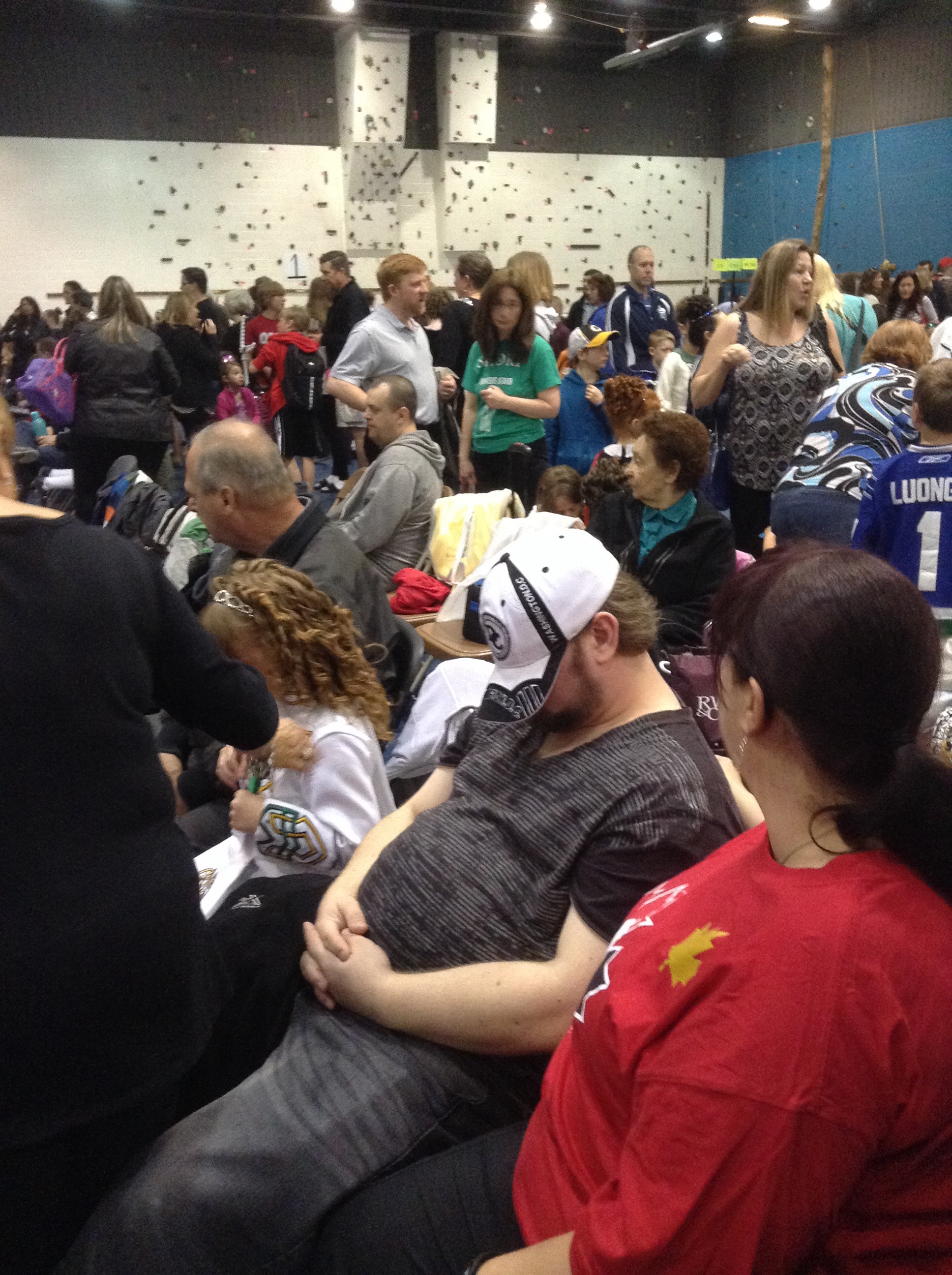 Well I have been to my first competition in Irish Dancing for children and young people. What an interesting scene! Many =, many people – I would say up to one thousand parents and children were all gathered together in a huge gymnasium of a local college to compete in Irish dancing. There were many stages set up not in the usual sense of raised stages but rather large wooden floors, down on the level of the spectators. The youngsters who had gone through many competitions already had their own stage. SInce this was the first competition my grandson had ever taken part in, of course we were not in that part of the gym. Most of the children were members of schools and you could see lots of little girls in the same colored dresses. The proceedings opened with a gentleman singing the Irish, American and Canadian national anthem. No wonder he was a bit hoarse. The music in our section was provided two fiddlers who played reels, jigs and various other forms of Irish music. Our fiddlers were young women. The children sat in a special set of chairs and waited their turns. They all had large numbers pinned on to their costumes so that the judges could figure out how to mark them. Well all that sounds quite orderly doesn’t it? Only the actual competition was orderly. The children took their turns, the judges assigned them marks and the marks were posted up on a big wall away from the competition area. But all this can’t give you a sense of the bustle, the crush of young families, the glitter of the girls’ dressed, the sober look of the boys, the drawn out notes of the fiddle, the warming up exercises of the competitors, the baby brothers or sisters asleep in the stroller or learning the steps from big brother or sister. There were the anxious parents, the happy-go-lucky parents, the watchful teachers, the solemn judges who bowed back at the children when they made “reverence”. Some of these competitors had come from far away; as far as Vermont or Ontario or even the Maritimes. They all had to be in the gym by 8:30 at the latest. The girls dresses range from sober, plain outfits to fancy embroidered bodices with stiff skirts. All the girls wore white socks and sort of black ballet shoes or hard tap shoes. The strangest part was the hair and make-up of some of the girls. Fortunately a good number of the little girls and young ladies had plain chignons but some had the most extraordinary wigs or postiches of curls and ringlets. Some wore tiaras or jewelled combs. Some of them looked like miniature Dolly Partons (minus the obvious). Since the dresses can exhibit tremendous bead work and embroidery, some of the mothers had brought dress that had been outgrown to sell at the meet. The dresses could sell for $300 to over a thousand dollars. The girls who were already dressed for their moment on stage often walked around with their dresses hanging down at the waist and some sort of leotard underneath. I guess all the work on the bodice made it very hot. The colors of the dresses were brilliant – blues with black or white lace – hot orange with flame tongues in the skirts – my favorite was a sort of cream color with Irish interlacing motifs embroidered on the bodice and skirt. I didn’t like anything that reminded me of Toddlers and Tiaras and seeing some of the parents pressure the kids was rather cringe worthy. Of course, the parents pay a fortune for these outfits to say nothing of the gas to travel to Montreal. The racial diversity of the crowd was wonderful. Oriental, mixed race and other Asian kids pointed their toes, kicked high and crisp and followed the figures of the dance with the best of the red headed and freckled kids who hold this music and dance in their heritage. The humming, buzzing feel of all these young fathers and mothers, kids and yes, grandmothers was exhilarating. I don’t like to post pictures of other people’s kids on a public forum but perhaps if their faces don’t show it will not be so bad. I had strict orders not to make a video in case I “stole” steps from other competitors. Well, our boy in the beginners section came in second and got a medal for that.. You could see he was not so happy with that result but. . . . his Mum took him to Ottawa today and he won first prize. Congratulations Samy! I hope I will enjoy going to many other competitions where you call up the spirit of Riverdance. (well, his great grandfather was called Patrick, after all)