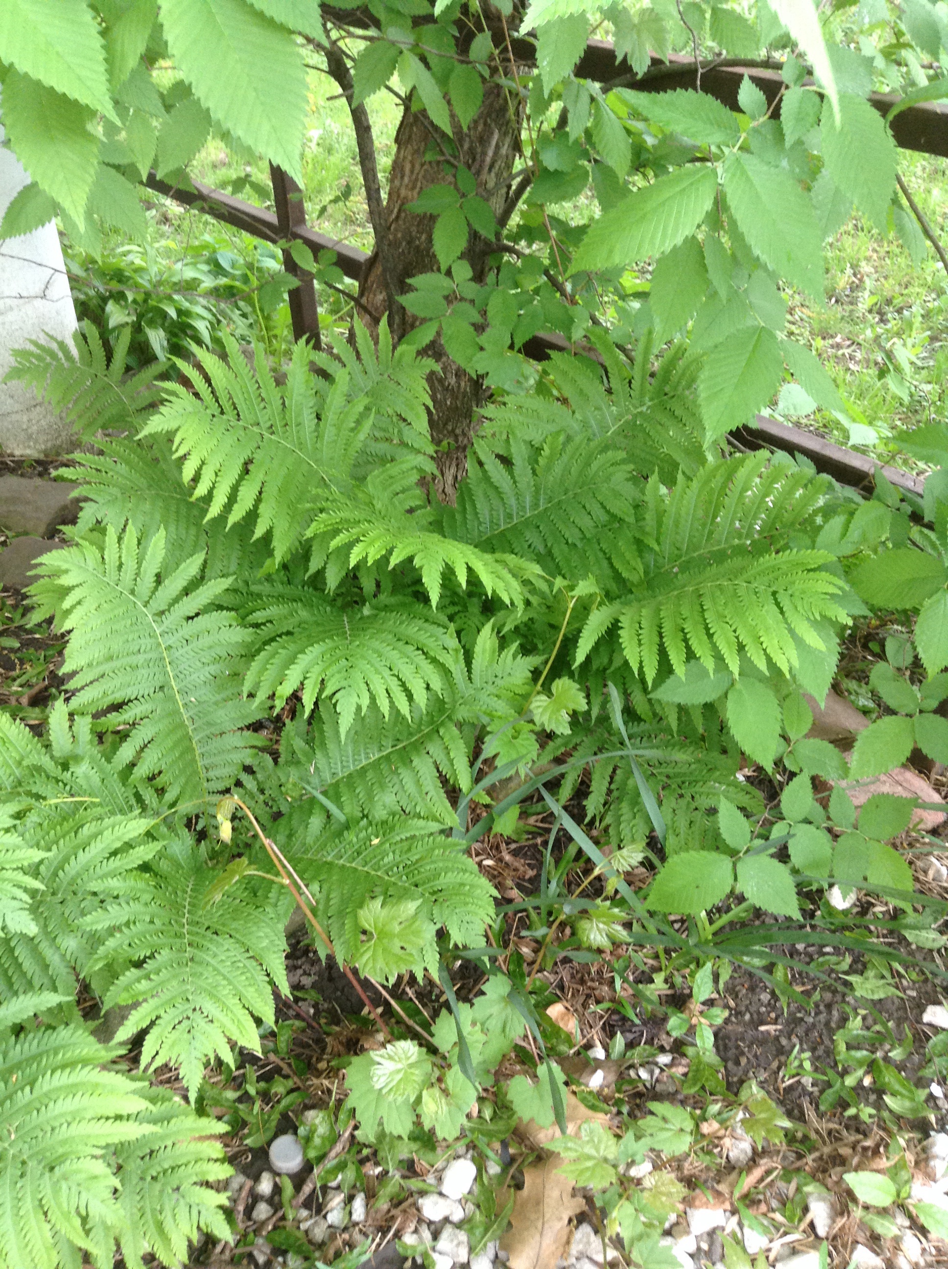 The encyclopedia (let’s be honest, Wikapedia) says that ferns in some form have existed for 200 million years but that ferns as we know them have existed for 120 million years. Boy, what a relief. I mean, 120 million years. That’s OK then. Come on,guys, even 1000 years is hard to envision as real and not just fairy tales. You know,people walking around looking like Jack and the beanstalk, Puss in Boots. Hey I wonder if beanstalks as we know them existed. . . Oh, sorry. Back to ferns. Who can envision even one million years. I know coal is petrified trees. Well scientists tell us that but then I remember my grandmother throwing a scuttle-full of coal on the fire and it seems sort of unlikely. Do scientists sit around and chuckle and say , “Hmm, let’s say 200 million years. We could even say one billion years. How would they know, anyway?” But then I revert to my respectful sensible homage to science. When I look at the kindly ferns that hastily pop up in my front yard every spring, I freak out a bit. Besides being older than dinosaurs (honestly, now, how many of you know if ferns are older than dinosaurs?) the fact that they propagate by spores is a bit odd. Flowers, seeds, fruit, all those seem ” normal” but spores??? A bit spooky. At night I imagine my ferns shooting up higher than street-lights just ready for a mild old dinosaur to munch on . There are a few odd legends about the rare ( think nonexistent) fern flower. Seems if you find one, usually on midsummer day, you get all sorts of good luck. So I guess next month I’ll be checking out my ferns for flowers. Maybe I’ll stick to the Victorian view of ferns as beautiful, discrete ornaments to be printed and stamped everywhere. Think potted ferns in the conservatory and Sylvia fending off Percy with her fan. Somehow I can get my head around that more than the 200 million year stuff.