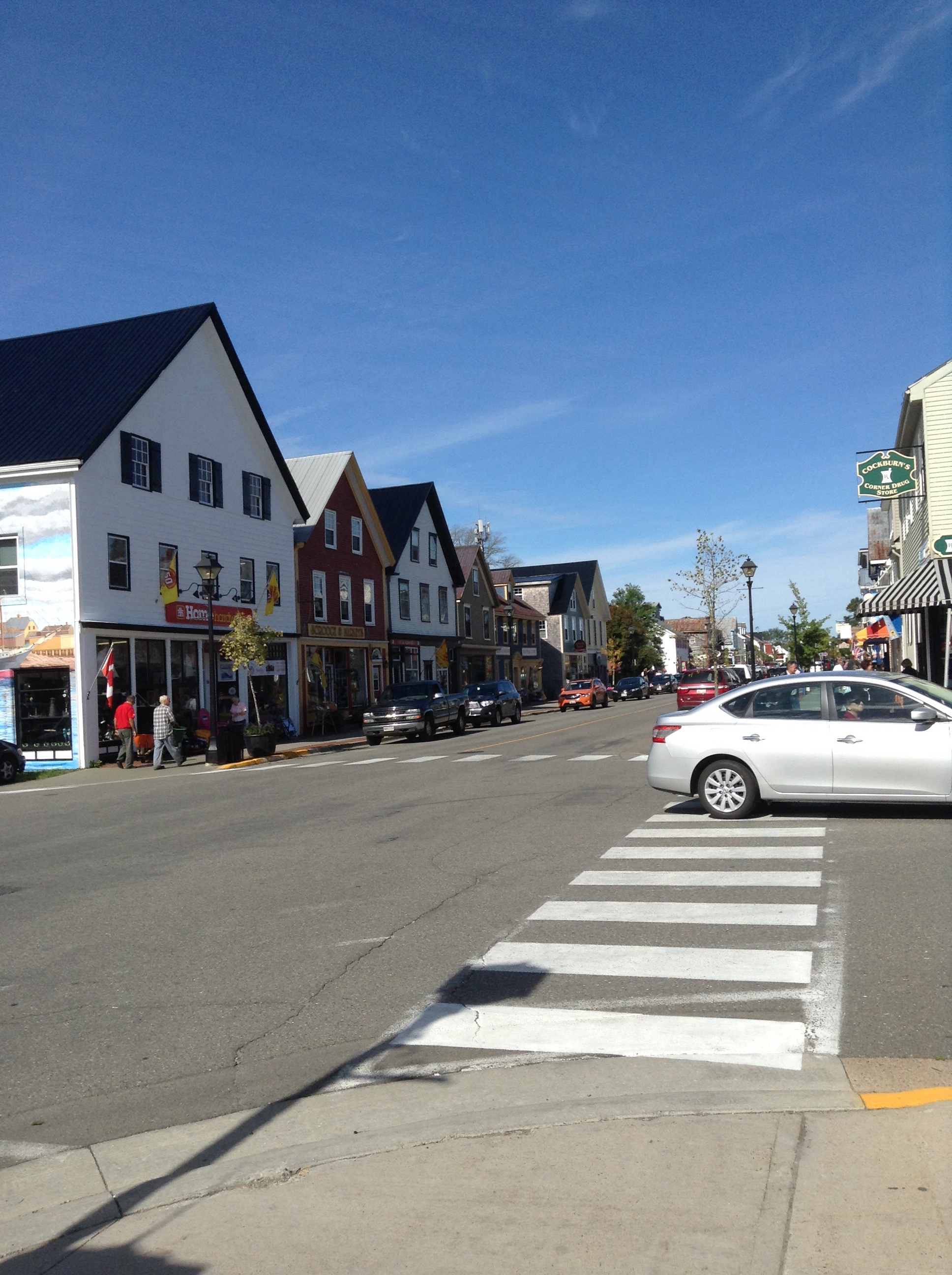 I forgot many things in preparing for this trip. I forgot my hairbrush, my waterproof shell, my painting kit. I was a bit scattered. I was distracted by my preoccupations, my emotions, my worries about how I would manage the rented car, the various parts of the trip. It is a classic hidden belief of many seemingly capable people that they are ” pretenders”; that they are not really so able, so confident, so adult. I have this feeling sometimes. It was a familiar surprise when I discovered how many things I had forgotten. None of them are vital and most were rectified by a trip to the remarkably well-stocked dollar store in this little town. So, here is a picture of the roofs of the Main Street in St Andrews. And here is a photograph of what I noticed and liked very much-the sharp daring roof lines of the buildings. It was painted with a one dollar kit if children’s’ watercolours . For you to judge.