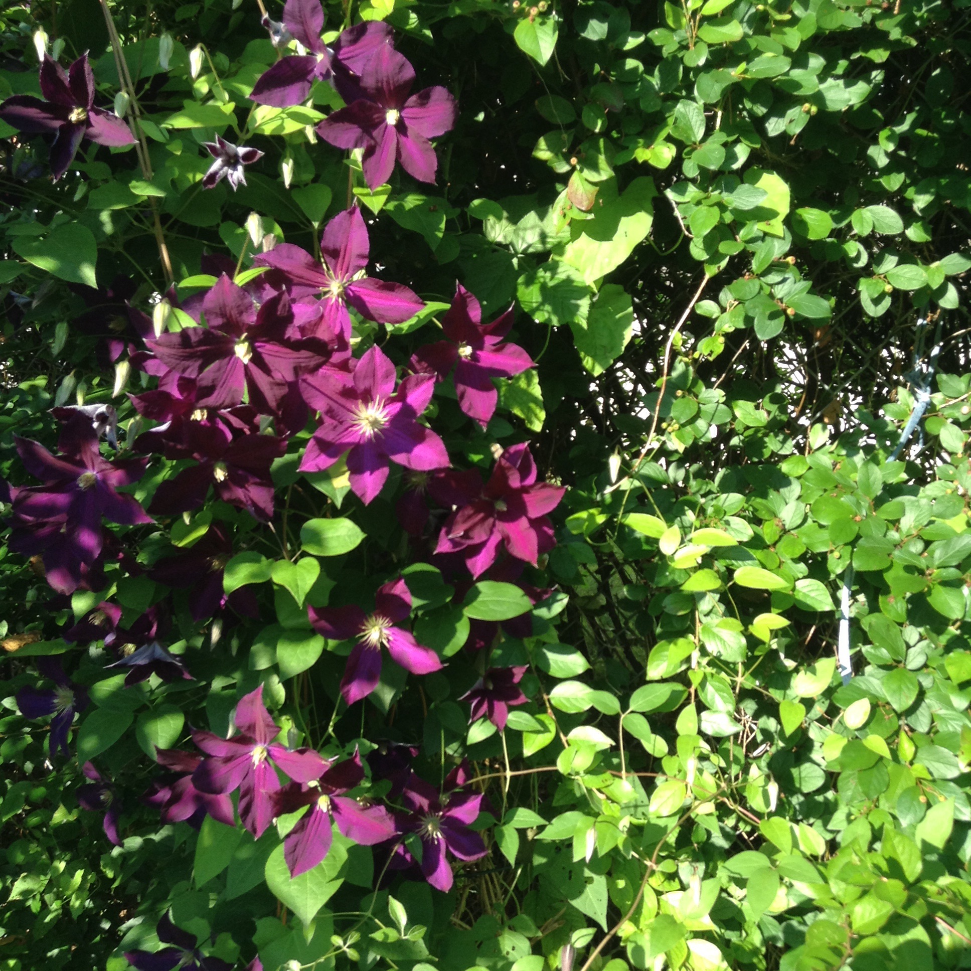 And the other pictures? Well. The dark clematis has sulked its way out. The other little new one only put out one flower! I hope it will do better next year. On the pink butterfly bush you can see one of my neighbour’s domestic bees. It is a new plant that has done very well. My neighbour has a bee hive this year so we must hope for more sunny weather. Very nice to have bees in the city, I think. Tomorrow is Canada Day. I will paint the mailbox red! Happy Canada Day to all.
