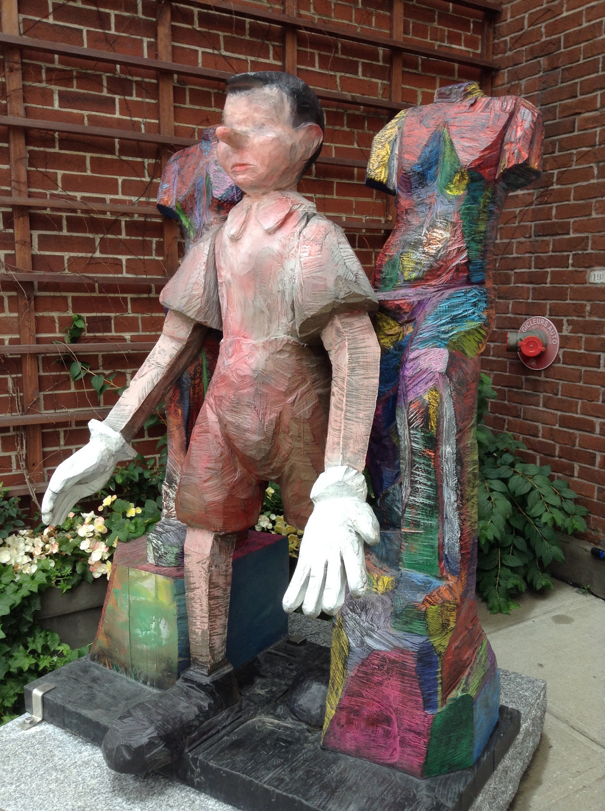 The more flashy Pinoccio and Venus de Milo homage is a little one. (yes his work can be B I. G ) by Jim Dine. This was outside a gallery on Greene Avenue and I think I’ve seen other works by this artist here before. OK, if you don’t know this guy, just google him. You can see a You Tube interview that is so facinating. He is a painter, sculptor, poet, decorator and such an unpretentious and sincere soul. I really got that impression,when I heard him speak. If you want to see more of his work, our museum has quite a few pieces including a painting. Pinoccio is such an important theme for him. Scratch your head if you will but…don’t forget, Pinoccio was just a piece of wood before he ran away, hurt his father, fell in with bad company and finally got enlightened. Hmm sounds like the journey many of us make towards being a grown up, no? Well worth exploring, Jim Dine.