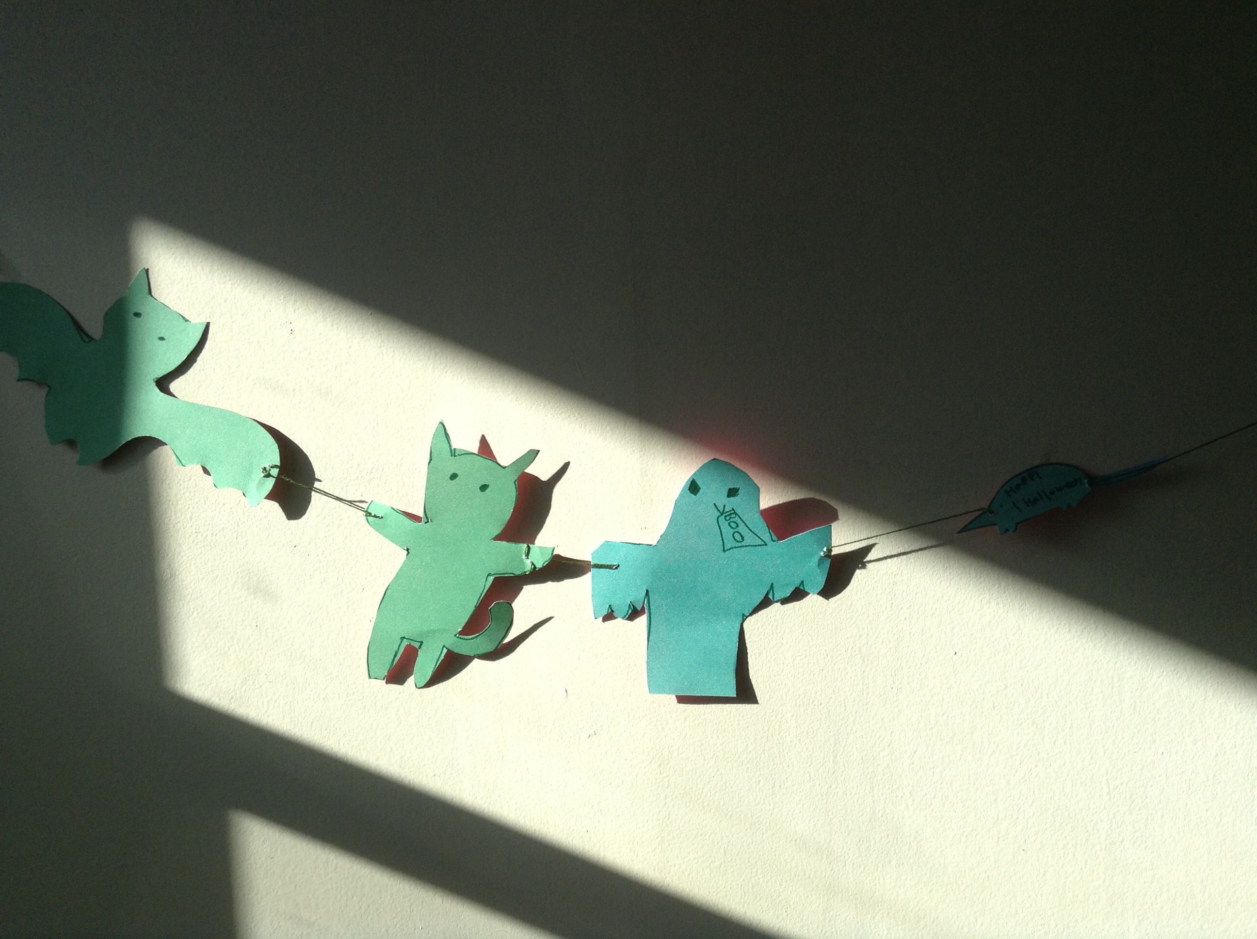 and….some in the shadows…hehehe! Why is it so hard to express a fearful cackle on paper? Don’t you like this great Halloween garland my granddaughter made. There’s something about the little mouse on the right that is so sinister. Love it! I love Halloween! I love the permitted “badness” of it, the scurrying around in the dark evening, the disguises, the birthday cake! Whaaat? Yes, Halloween is my birthday and I think it’s the most fun day to have a birthday. I can express my witchy side, so often suppressed and cackle away on the street. I have had a nice witch hat and a besom broom for a couple of years but today I bought a marked down wig too and the kids are going to be totally shocked! What could be more fun than knocking on the doors of total strangers and demanding candy. And in the dark!