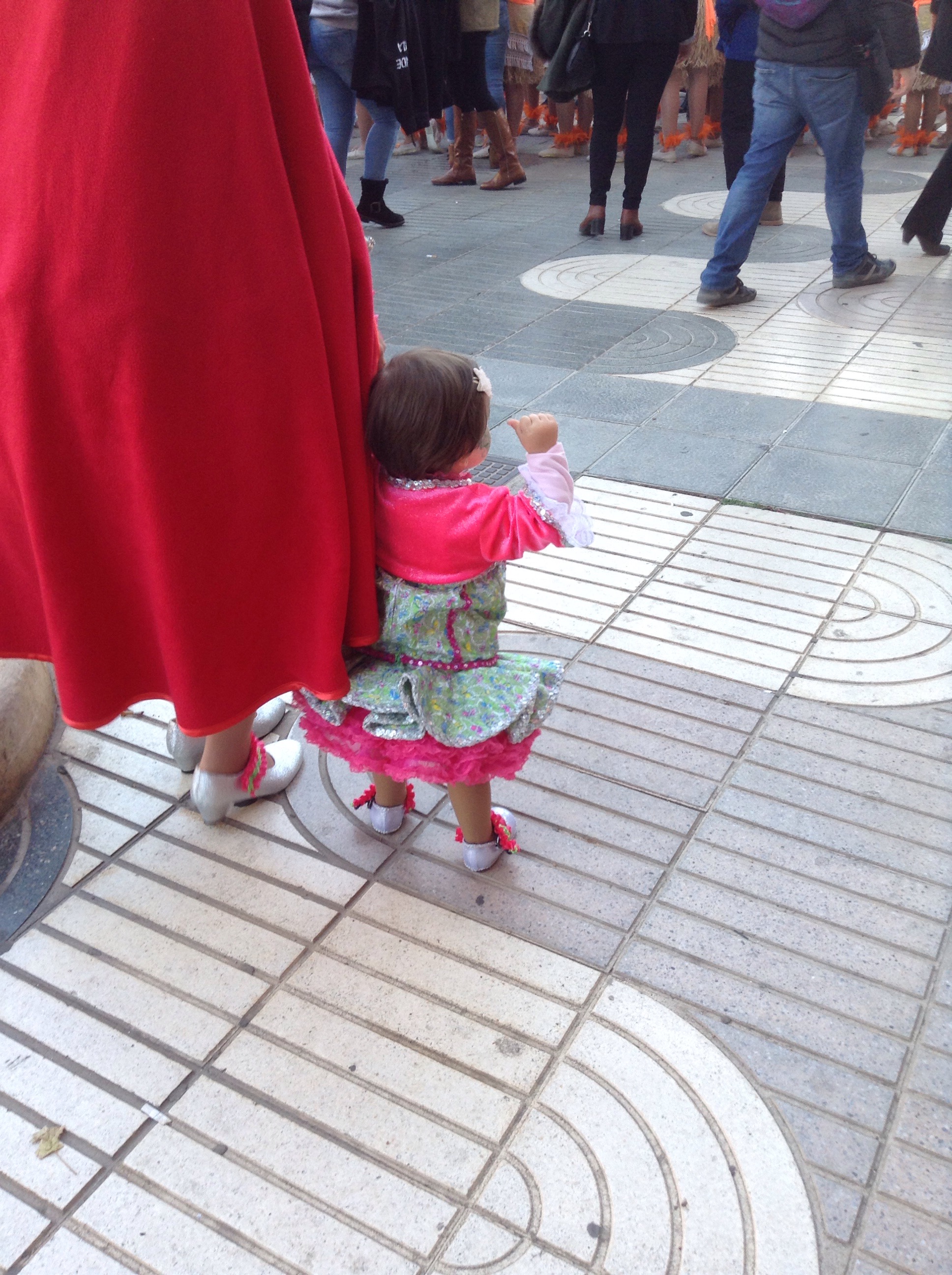 Despite this note of political turmoil, the rest of the parade was a joyful muddle of diverse themes. Hawaiians, showgirls, Chinese, Indian, Arabian, Mexican – all dancing along to infectious Brazilian carnival music! My favorite was a two year old dressed as a bee. She insisted that she must march in the parade. Over and over again, her dad marched her up and down 40 feet beside the parade route. On the walk up she sulked. On the way down she beamed. To me, that’s the spirit of Carnival. Humor a bee! Why not?