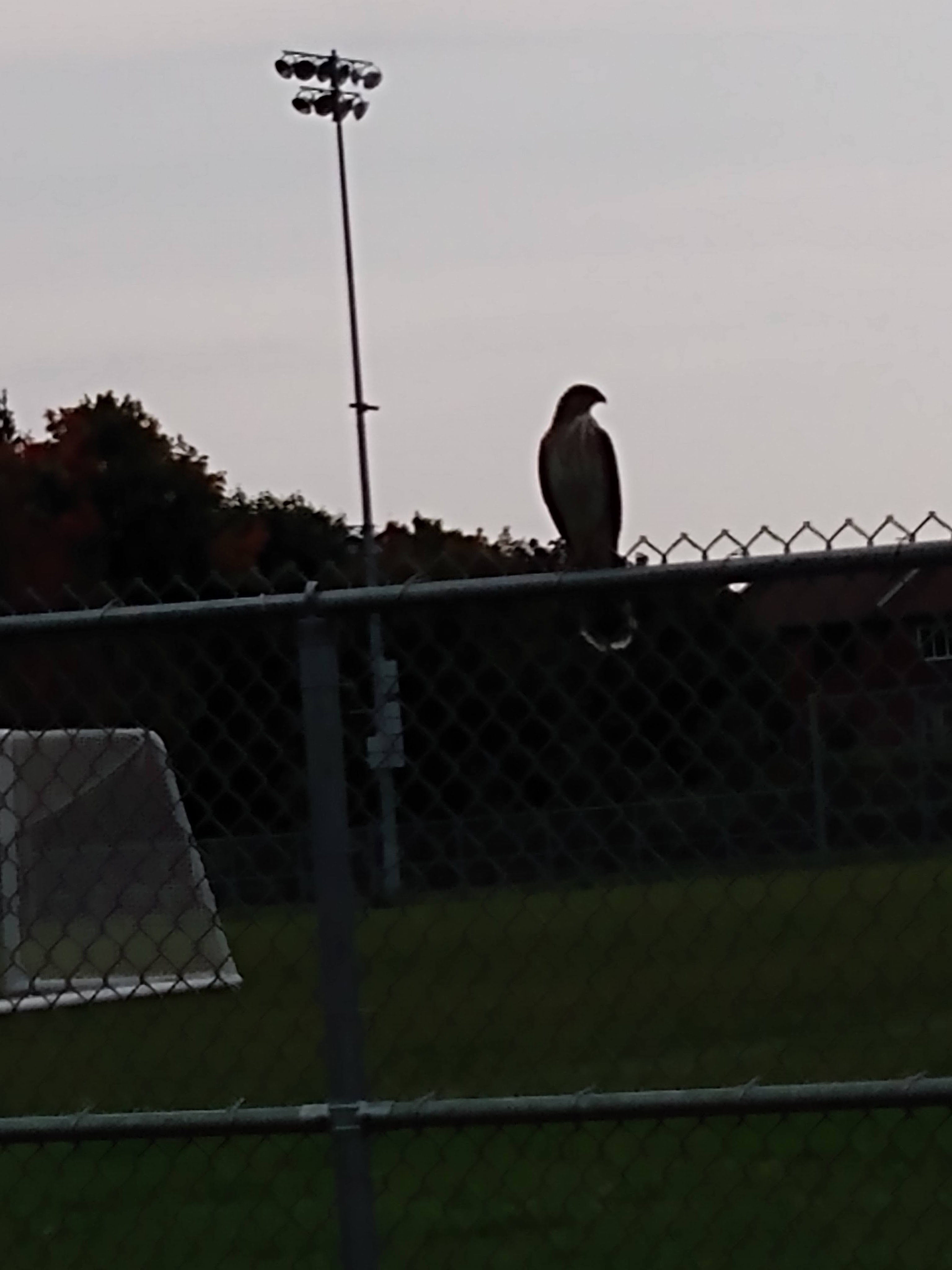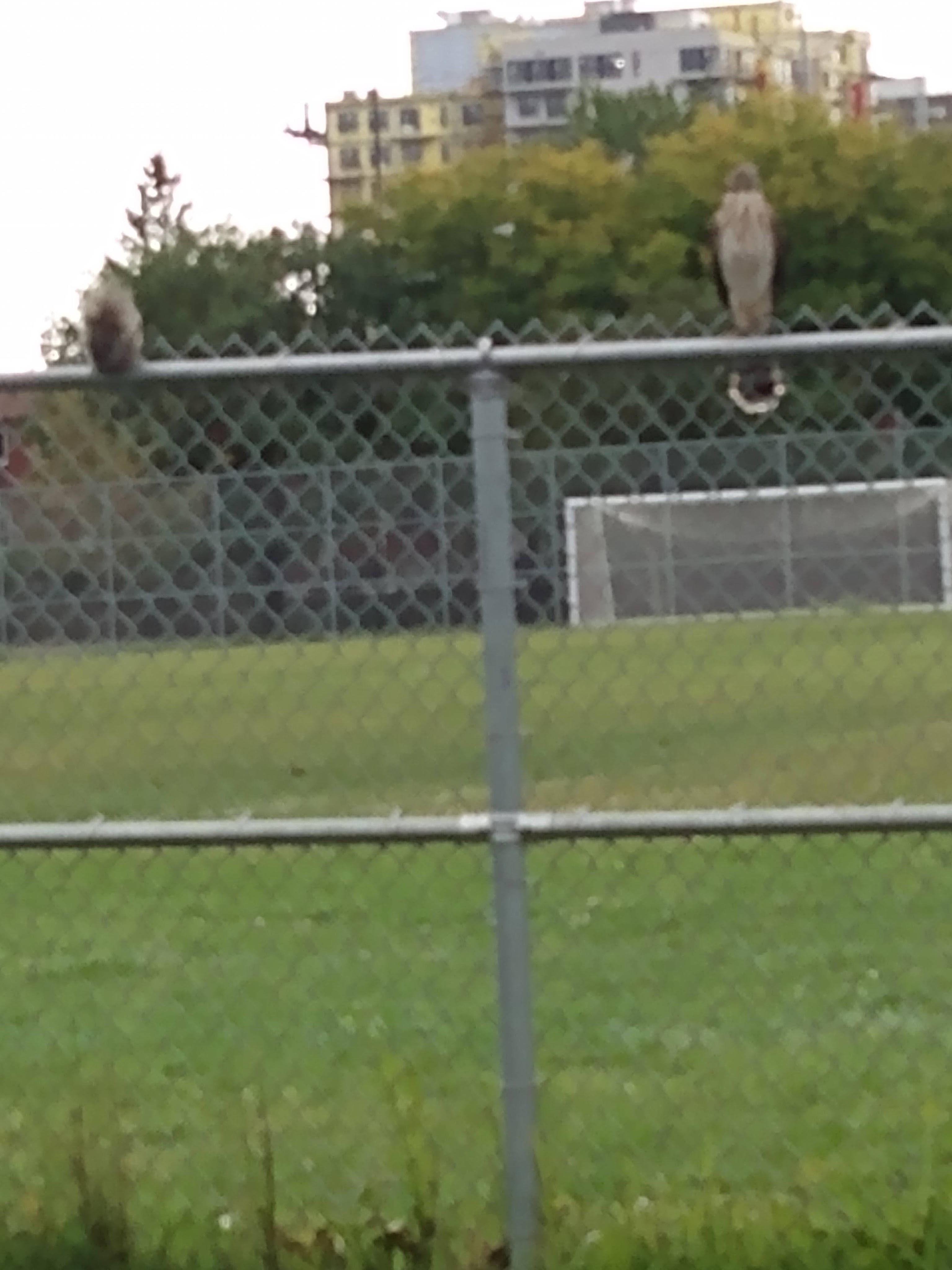 Sometimes this fellow and his mate show up. They usually perch on top of the light posts, much higher up than this but yesterday they were intent on lunch. There are a lot of squirrels in the park and yesterday one was particularly bold, or canny. He sat perfectly still, about ten feet away from this beautiful little bird of prey on top of the fence. How lucky was I to have my phone in my waist pack, and how lucky was I that they both seemed frozen in the moment of waiting. I got the feeling that the squirrel was hoping that if he didn’t move, the bird would ignore him. I got the feeling it was beneath the dignity of the bird to chase this squirrel up and down a chain link fence.
