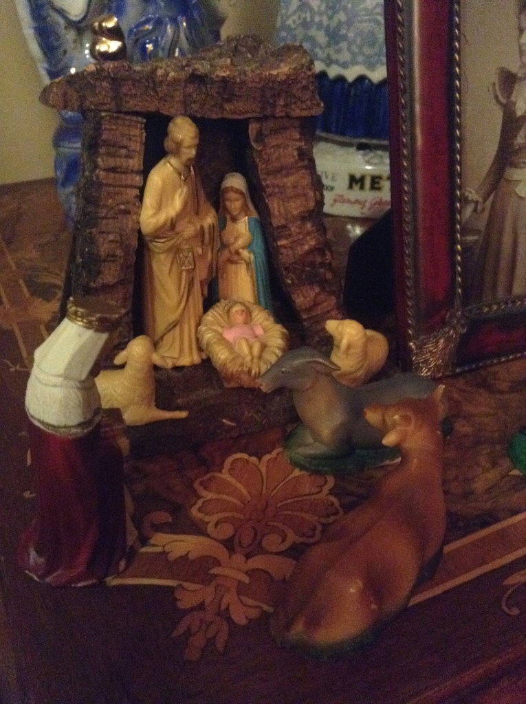 “Joseph, go and put this in the crèche over there on the little table in the living rom. I forgot to put it – the figure of Joseph.”
