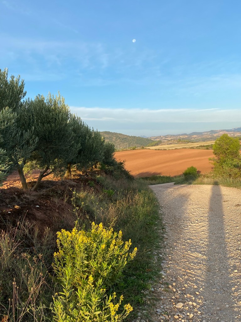 Just as I lay down on a picnic bench this appeared above me. I don’t think I have ever seen a rainbow stuck up in the sky like that. We walked about 15 km and I came to the albuerge about an hour before my companions. I can’t walk slowly because I have to much energy…and anxiety about getting a bunk! This is a lovely albergue with showers and a big airy room! The walk today was mostly through lovely farm land. I love this way of slowly traversing the landscape.