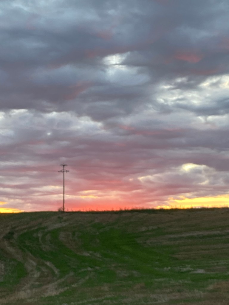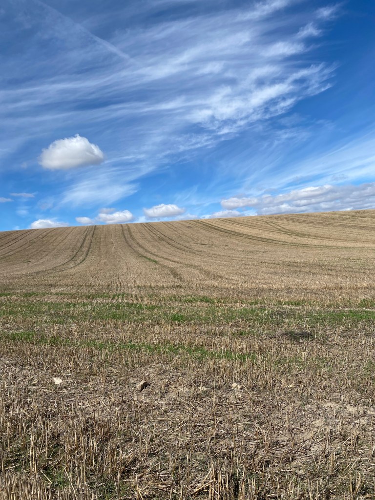 A long walk on mostly flat terrain (17 km) that led to a wonderful albergue out in the middle of nowhere. The landscape was stunning with lovely clouds. We are at about 800 meters high. Is that why the clouds seem so low?