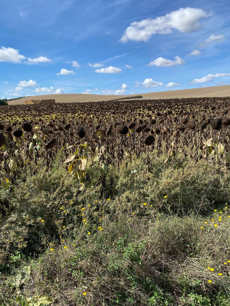 Very nice pics, once again. I came across sunflower fields while cycling in Davis, near Sacramento CA. They had not yet dried off to harvest the seeds. Any harvesting going on along the way?