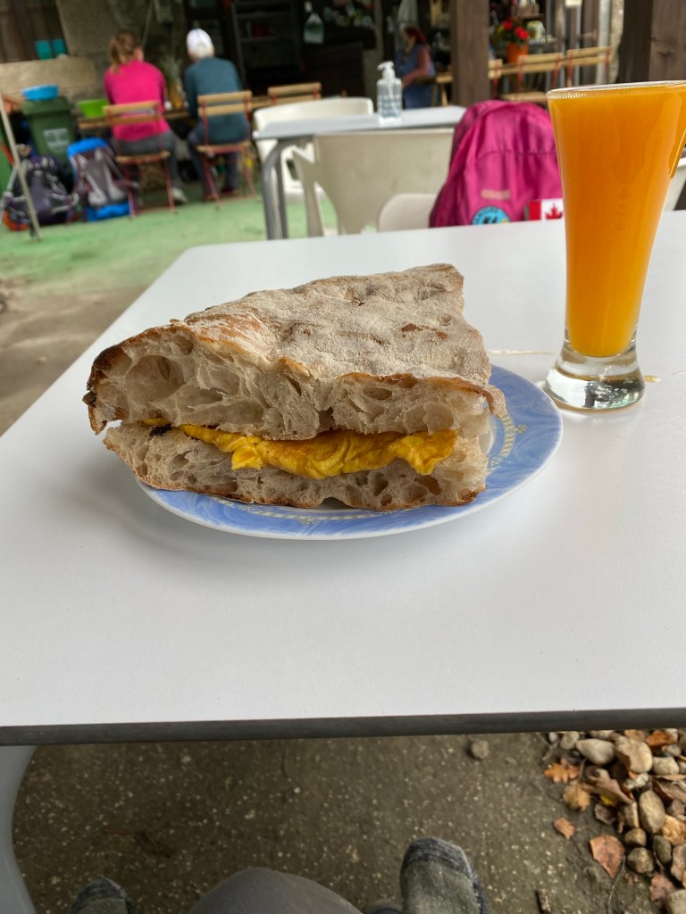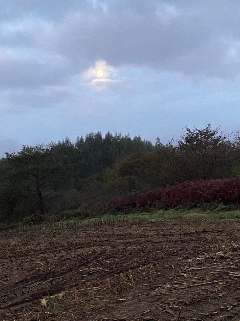 When I set off there was a thick mist and very little light. My albergue was once again out in the countryside and so I walked in obscurity until the sun came up. All morning it drizzled and it was off again, on again with the poncho. I was clammy and damp with sweat and with the high humidity of the surroundings.