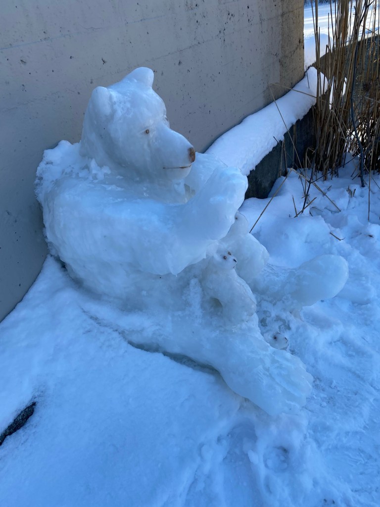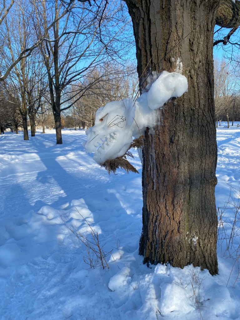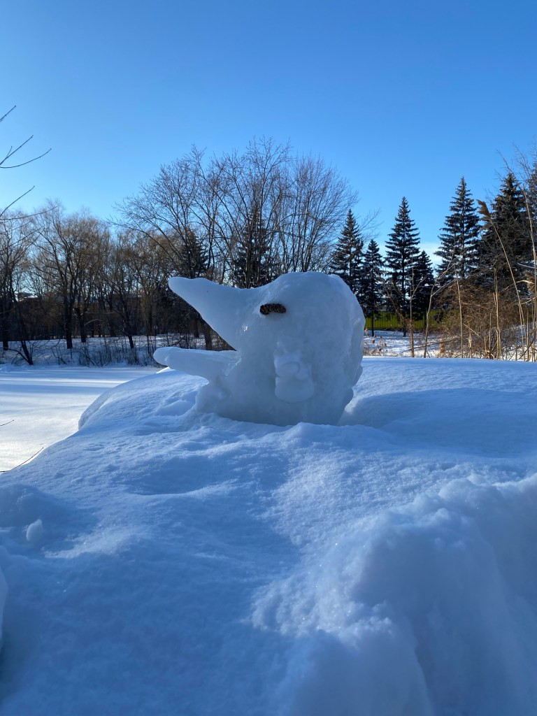 It was cold today -17 but as you see it was sunny and there was no wind. I had seen a few quirky snow sculptures over the past few weeks but this one was really special!