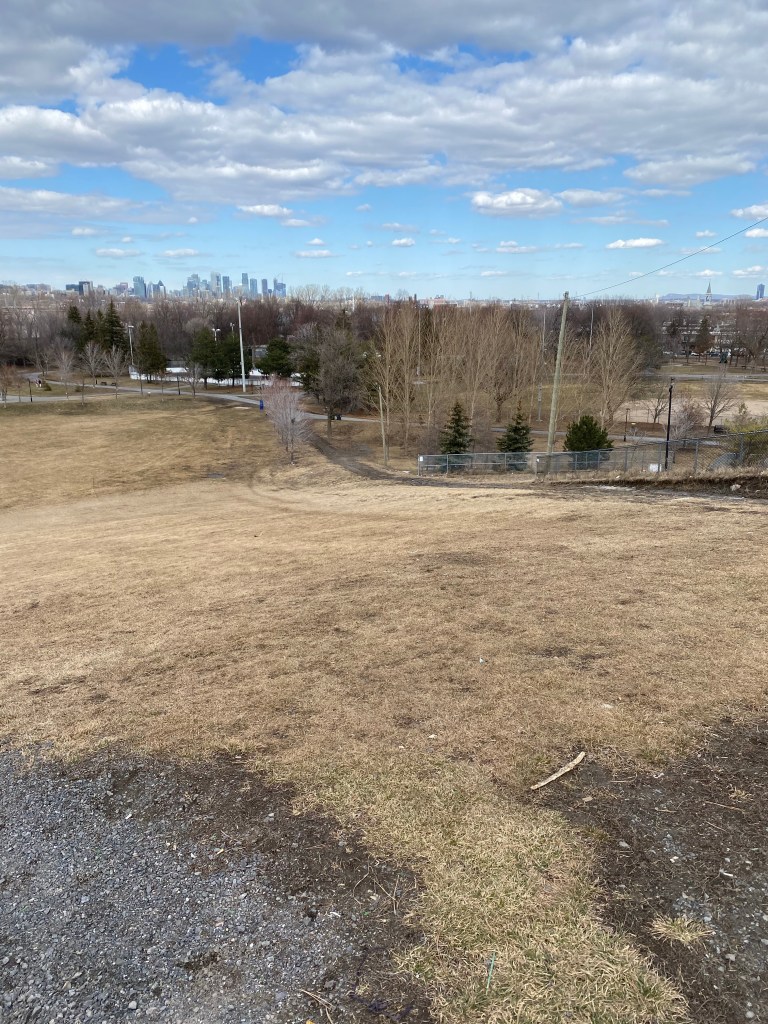 Look totally flat from the top? Yesterday I finally got going and pumped up this hill a couple of times. It is a toboggan hill steep enough to require a couple of visits from the ambulance at least once every winter as teens whizz down and smash into each other.