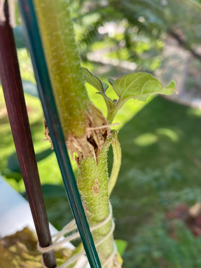 My top heavy sunflower snapped its stem on a windy day. I tied it up with a support stick but I don’t understand how two weeks later it managed to send up enough nutrients to have a new flower open up!