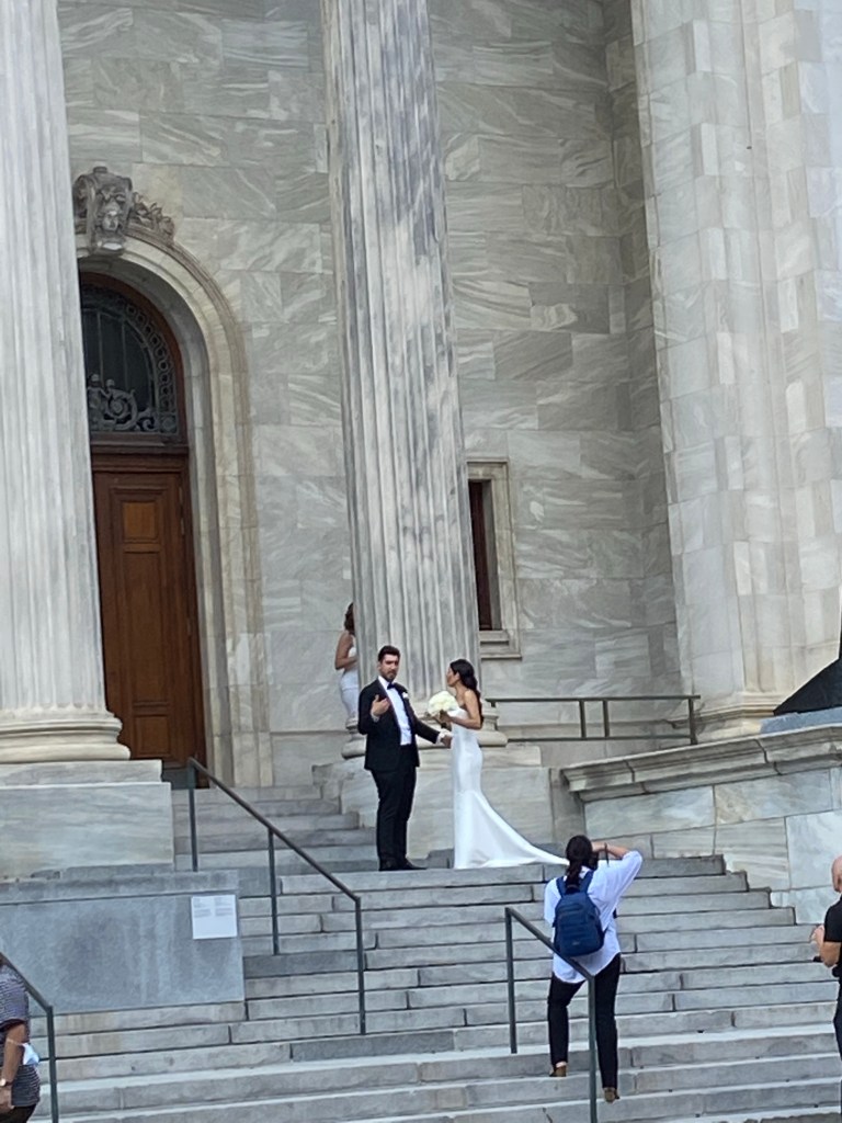 On the steps of our museum, after my tour it was a joy to see this young couple.