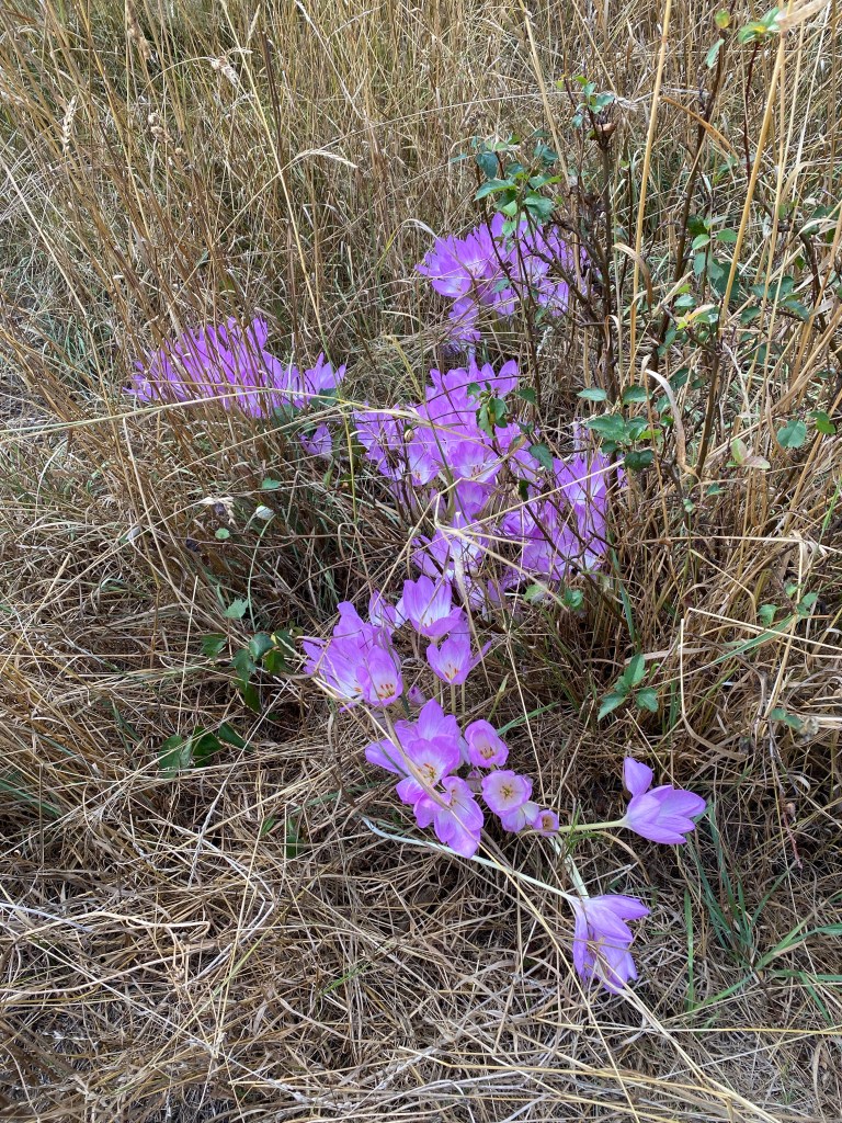 Autumn crocus in dry grass