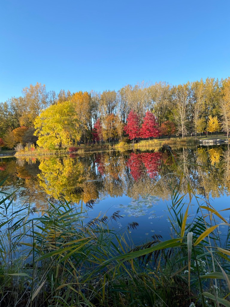 After a month on the West Coast it’s time to get back into my routine of walking… and training for my next Camino. This afternoon the temperature was a little cooler than what I experienced on Vancouver Island. The angle of the sun was lower and it was clear that we are in full- on fall mode. The colors are spectacular and I am sincerely grateful to live one hundred paces from this spectacular park. However, I miss the “ wild” feel of the semi-rural community where my daughter lives. I miss the rooster crowing every waking hour and the baa of the sheep next door. From certain spots on my walk I don’t see just this beautiful pond, but a six -lane boulevard, its roar mercifully muffled by the trees in the park. There’s no mistaking the city vibe here.