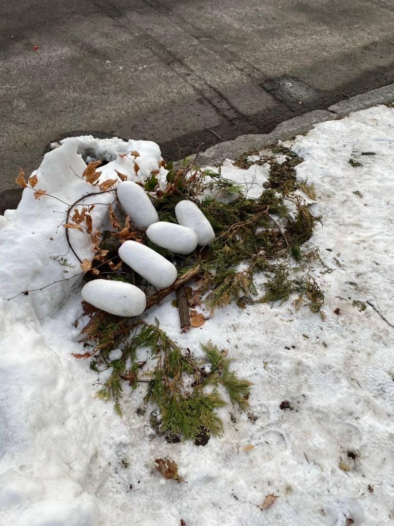 of a magical creature. Out on my daily walk yesterday I was astonished to see a typically sparse nest, close to a deserted parking lot in a city park, fully exposed to the elements and to the curious gaze of passers-by.