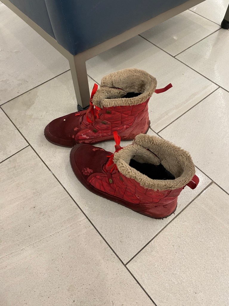 A lot of my footwear is Colombia, from everyday boots to trail runners that conquered the Camino de Santiago. I’ve had this venerable pair of boots for what feels like forever. During a Colombia sale I finally chose a new pair-not quite so Santa like but still pretty snazzy. Went to pick them up from the post office and decided to ditch these venerables right there in the recycling bin of the Shopping Centre. When memories become baggage it’s time to let go!