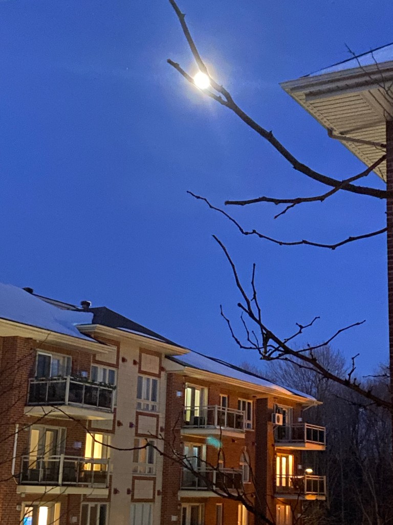 Clouds, rain, an obscure sky for so many, how many days. It is always wonderful to see the beautiful moon rise in early evening. Does it mean Spring is coming? It is coming, moon or not but after a dark and cloudy winter the whole town searches for every hopeful sign. This moon, like a shy young girl creeps up the sky. In a few moments she shines, shines like the wonder she is.