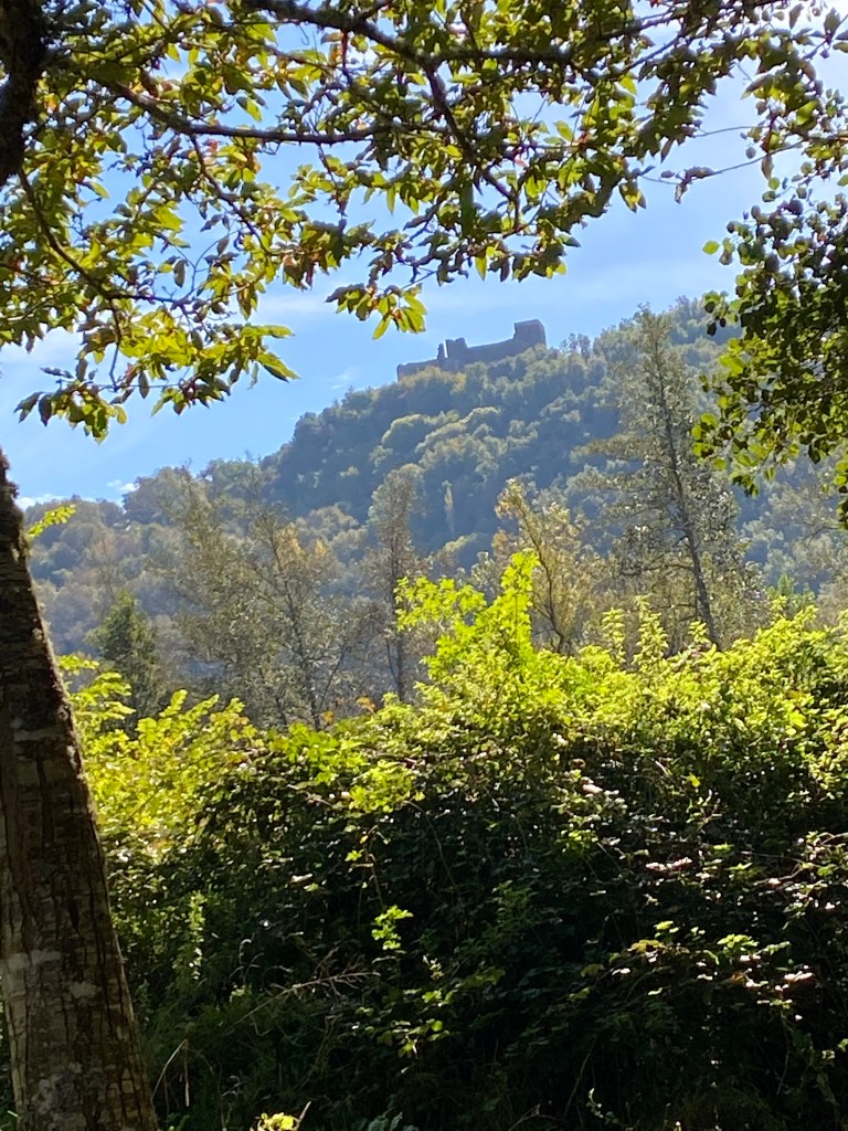 As we left the town a narrow, obviously older road, ran below our route. The scenery looked so familiar! Surely I knew that river running beside the road. I had walked there two years ago with a Spanish pilgrim, Carmen. Yes, Tricastel was the name of the place and there was one of the castles flashing by too quickly for me to capture it on my phone