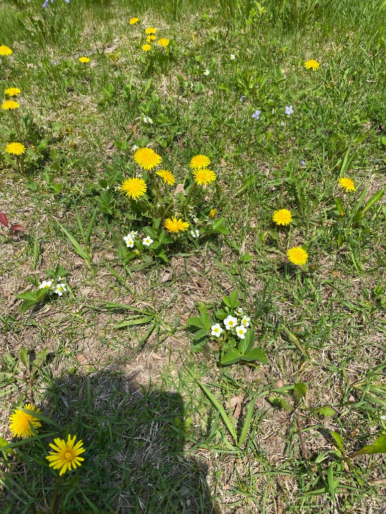 White and blue violets are out too and that brash and beloved sign of spring, dandelion!