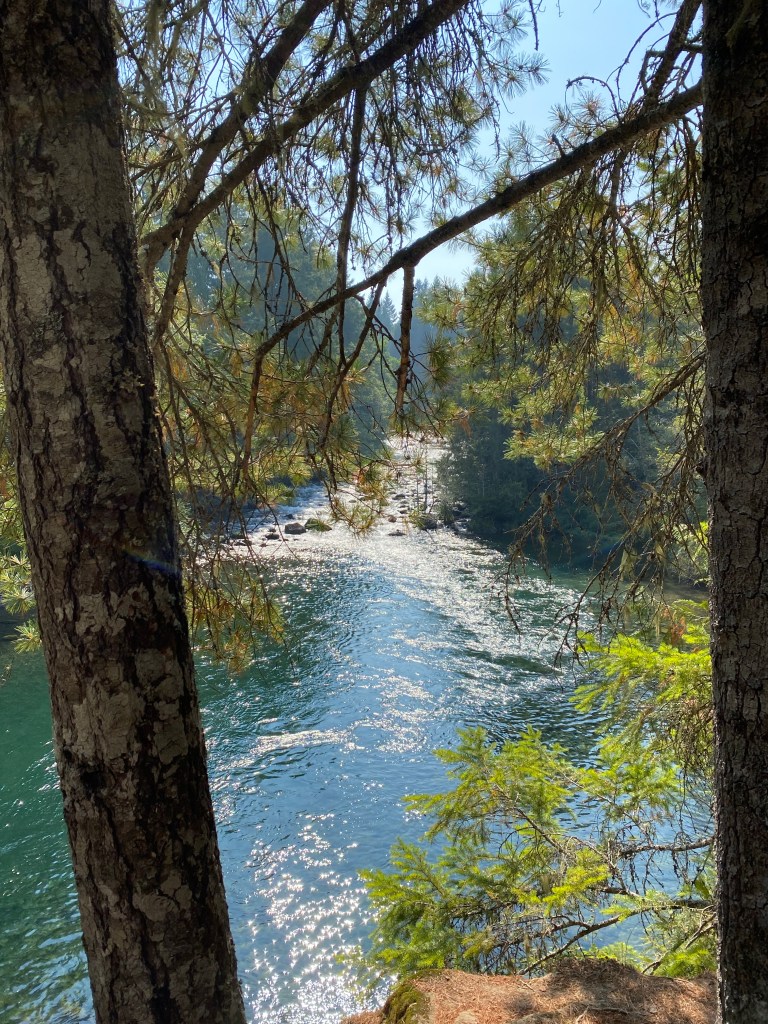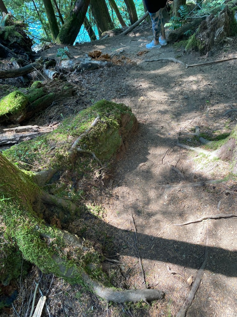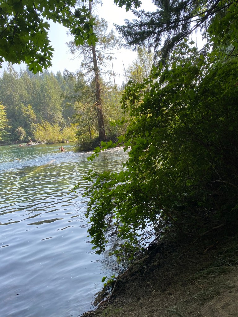 There are many shallow rivers that flow into the Strait of Georgia close to my daughter’s home. A short drive and a 1 Km walk brought us to this wonderful view and the prospect of a dip in the cool river. It was a hot day and about to get hotter as we faced the scramble down the path to the shore.