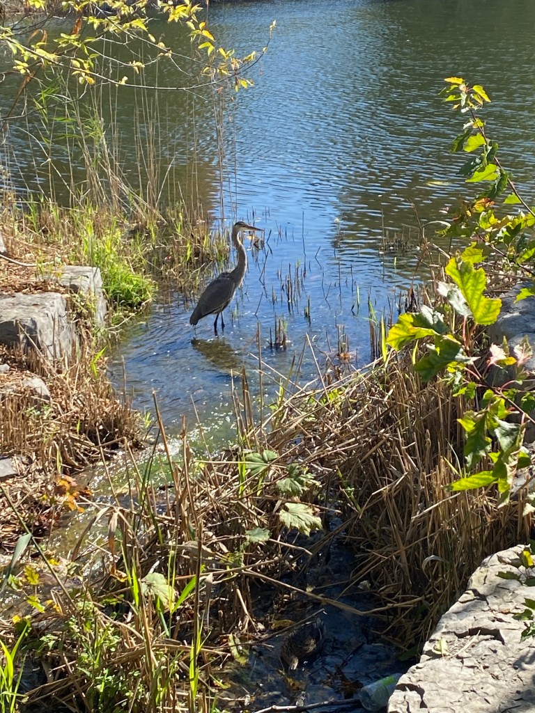 I wonder what he’s waiting for and where he will go when all the other birds leave. The Canada geese are still hanging around doing a few test flights now and then. There’s a white heron in our park too. Are they a pair I wonder? Although my shots make it look like our park is very bucolic, it’s in the middle of a very busy area. There are three big boulevards within a kilometre and the Metro terminus is 200 meters from where he’s standing right now.