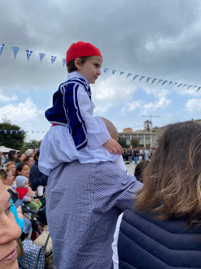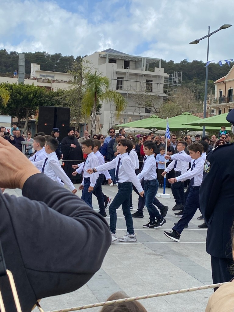 What struck me today was that everyone in sight knew exactly what was going on and were united in thinking that the whole day’s activities were wonderful! It is a long time since I have been in a town where I could be 99% sure that any person I spoke to in Greek would understand me. I’m petty sure I like it…,but it’s very unusual, oh, as a nod to the religious side of the holiday, anyone called Evangelos or Evangelina was feted and congratulated. An interesting day.
