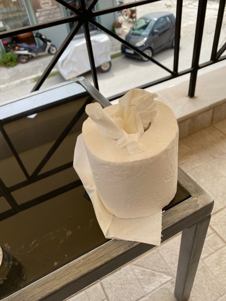 In Athens I was a bit congested but nothing much. Here on the island, however, this is my new fashion accessory!
