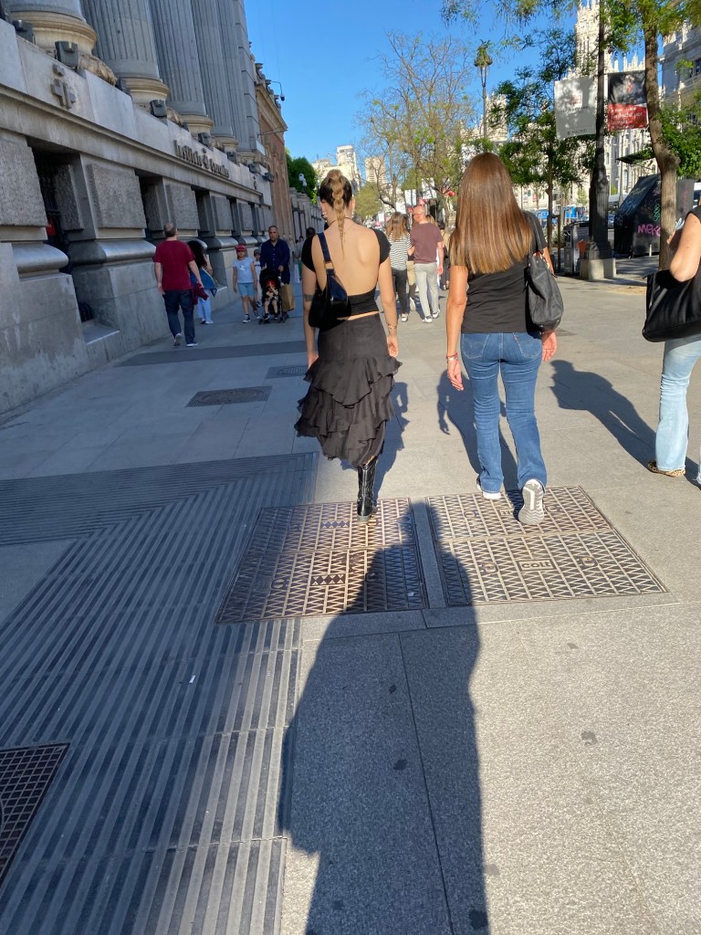 I flew from Athens to Madrid today. It was a very boring flight because I was in the middle one of three. What was not boring was getting to my accommodations. I wasn’t really sure where it was-only that it is close to the bus station where the next leg of the trip will take me on Sunday. I retrieved my bag and somehow ( my travel ap was not cooperating much) I managed to figure out that there was a shuttle from the far distant airport to the centre of town. Was my hostel ( yes people I sleep in hostels) in the centre of town? Vaguely , I thought. I bought a ticket on line and quite soon a bus ( no. 203)roared up. Many people piled in with their bags. In my best Duolingo Spanish I asked the driver if he went near the address I wanted. He kept on repeating a word I have never heard but we sped along at an alarming pace on a six lane highway for about 20 minutes. I decided to hang in there. The crush was so tight in the bus I couldn’t do otherwise. I remembered Google maps and was reassured to see we were headed in the right direction. When we were a couple of hundred meters from my destination I decided to hop off with some other people. I preferred walking with my new wheeled suitcase than flying off for another couple of kilometres.i got off here: