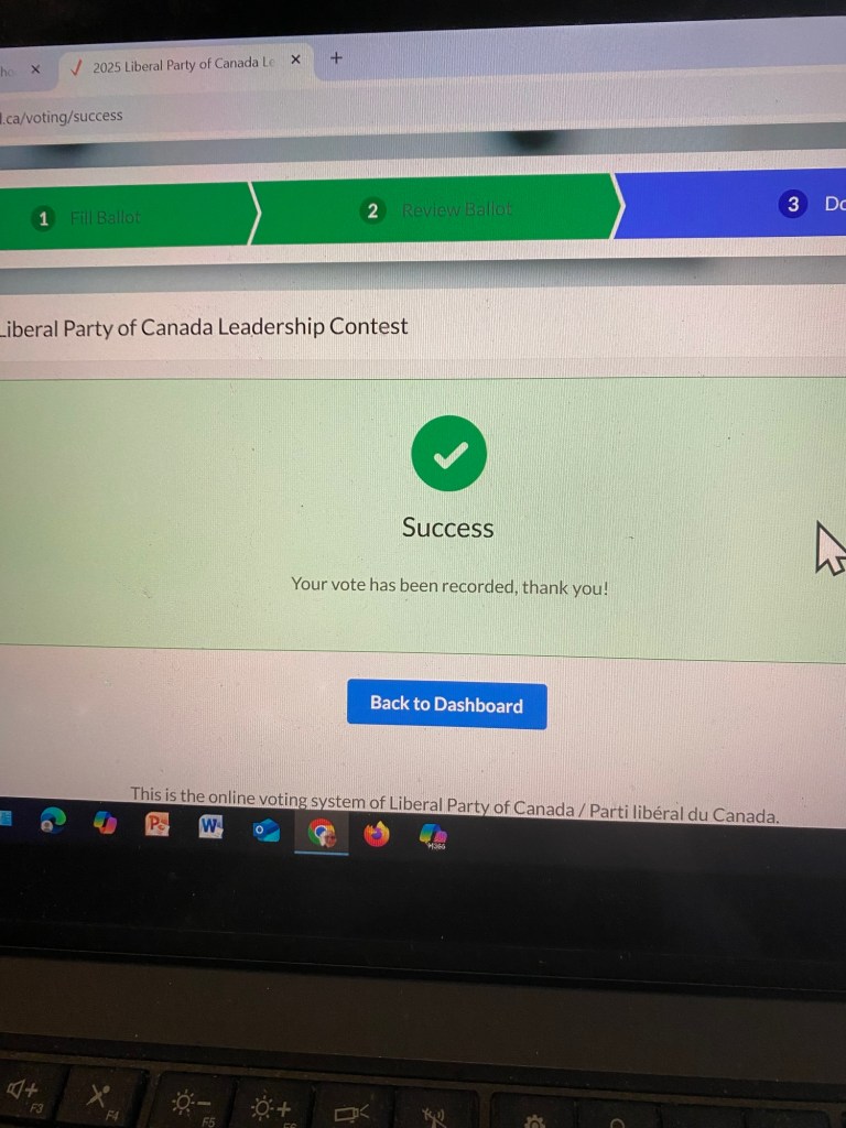 It is inconvenient that our Prime Minister basically was forced to resign just as these storm clouds were forming. So, as a card carrying Libéral I wanted to cast my vote for the next leader of the party. The leader of the Conservative party is a Trump wannabe for whom I could never vote so having a say in who will lead the party I hope will lead this country. It was a bit of a convoluted procedure ( good in terms of security, I suppose) and now – success! The winner will be announced.