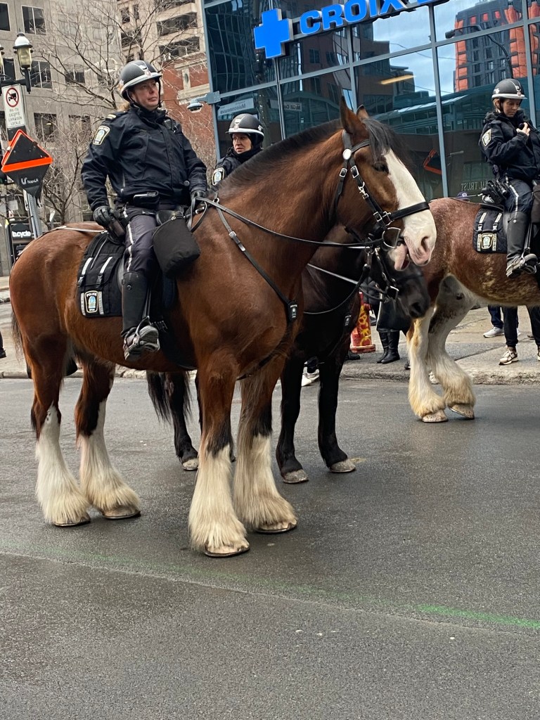 It was a parade like no other. Rather “ homemade” in flavour, despite some wonderful marching bands, it had the lovely mixed up quality that is unique to Montreal. The threatened rain held off and we were sent off home by some Montreal mounted police
