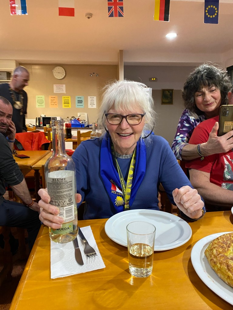 It was an eventful day to day the least. I discovered that Anna, an Italian hospitalera of many years experience is to stay here for many days. I begin to understand the blessings of deafness because there can sometimes be a question of volume control in a situation where terrazzo floors meet heave wooden chairs and the enthusiasm of partying pilgrims in the evening. Also, some of my partners seem to believe that volume can overcome some of my lapses of understanding in Spanish. A new partner arrived yesterday. Pedro, another Italian who startled me as I quietly mopped the floor with a rendition of “Volare” that would have seen Pavarotti running for the exit.