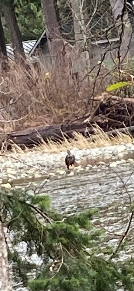 Yes he really was right across the Oyster River as I went for my noon walk. This picture is a bit fuzzy as I had to crop it. I took it just in time as he soon spread his wings and flew up the river away from the sea. You would never seen him here in the summer. Too many people about! The sea was absolutely calm and some seals were playing, slapping their fins and tails but they were too far away for pictures.
