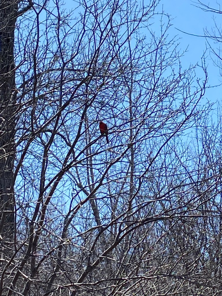 He’s the guy I have to thank I guess for a beautiful opportunity to see spring birds. Not many, mind but the wonderful thing was it was finally…..warm! I brought bird seeds and timid chickadees good their time coming to my hand. The big thrill was this guy though.