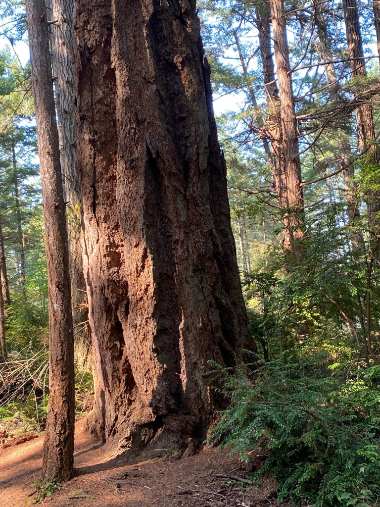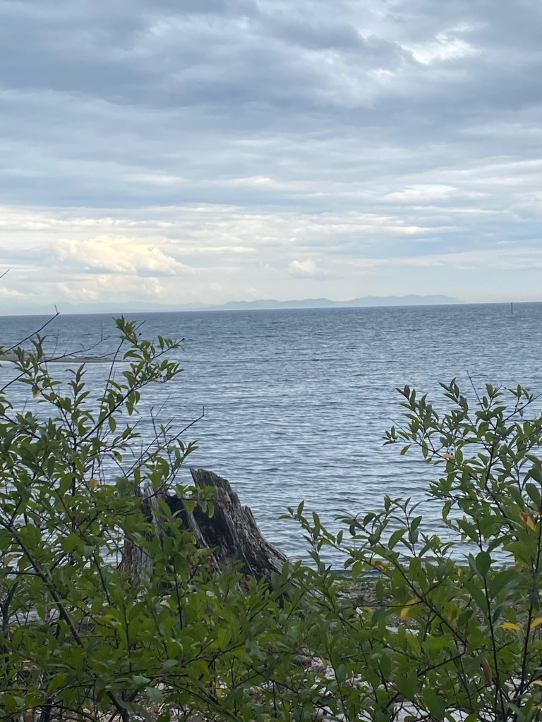 live out here and it is wonderful to drive on narrow roads that lead to provincial parks where only walking is allowed. A short hike through ferns and forest leads to a high bluff where we can enjoy views of the sea