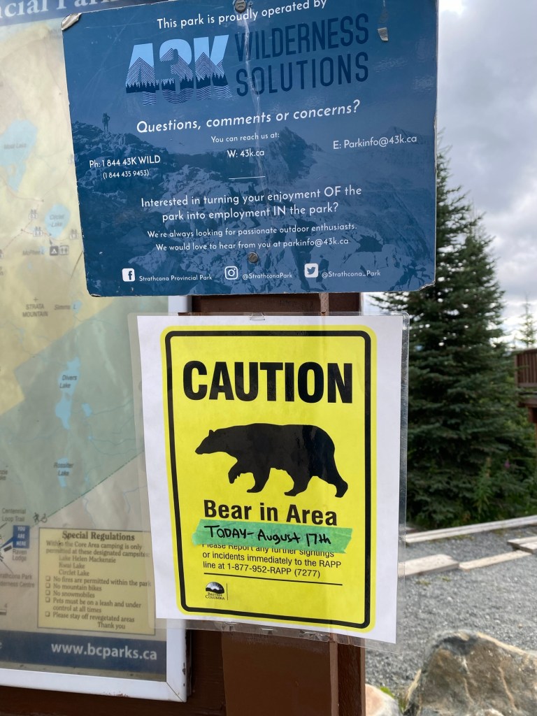 This sign at the trailhead was not very encouraging. I have a bit of a phobia of bears. However, I gulped and set off behind her as she airily reassured me that we just had to say “Hi Bear” and look the fuzzy one in the eye and he would disappear into the woods. I had no idea black bears were so antisocial.