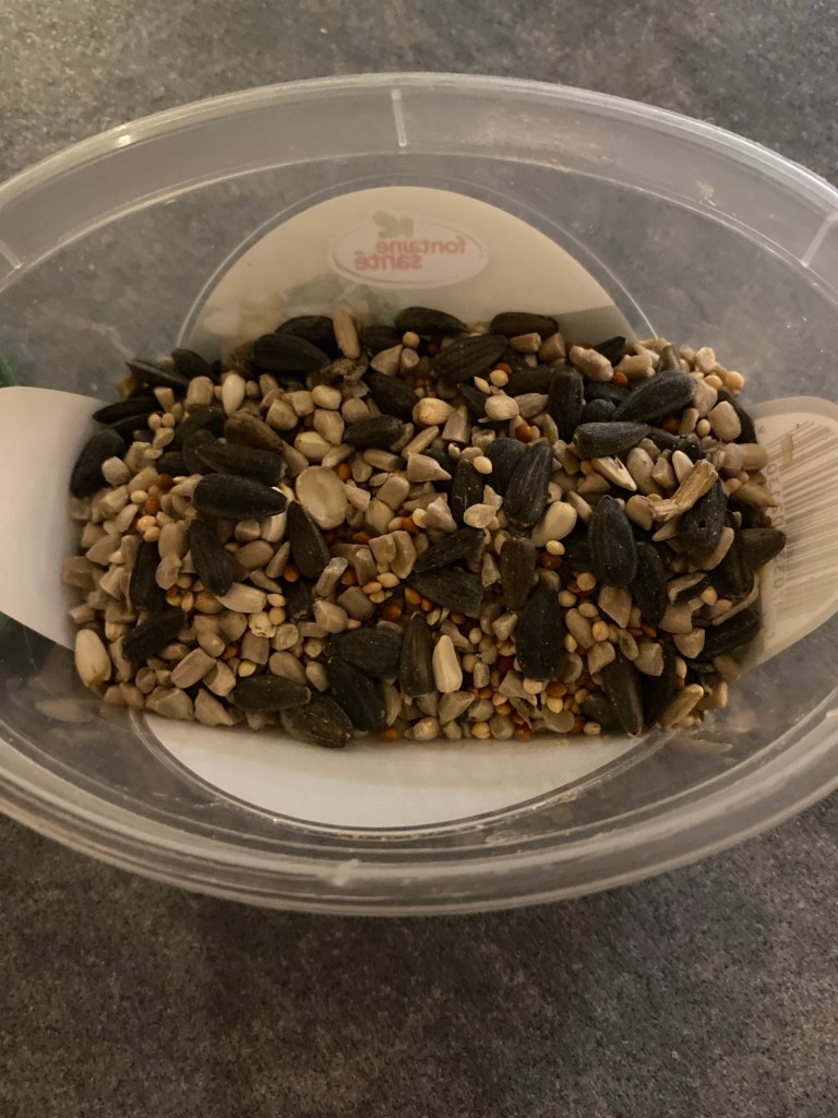 Turns out they like the sunflower seeds best although with their little beaks I was amazed they could swallow them down.