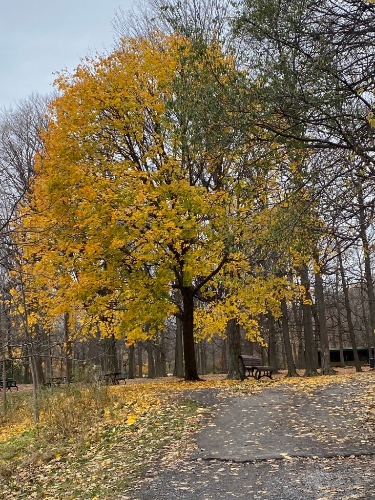 Although we’re still above freezing here in Montreal high winds and rain on Halloween night meant that most of the trees are bare. Not all…