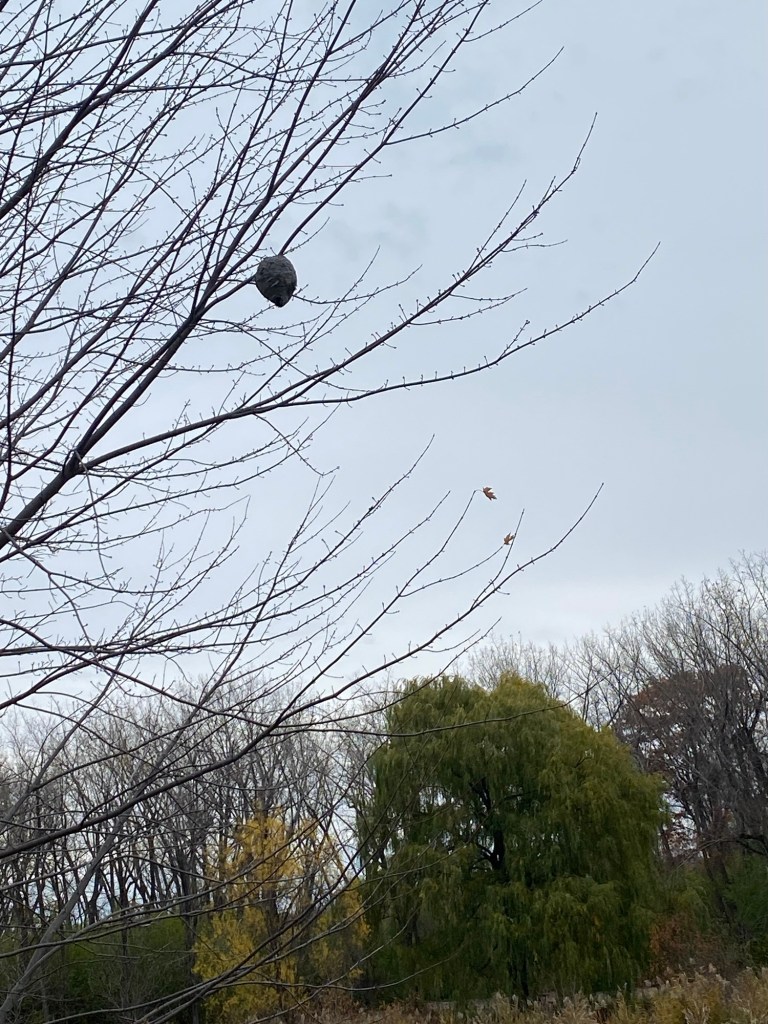One thing that bare branches allow one to notice are the distinct messy leaf nests of squirrels and something else